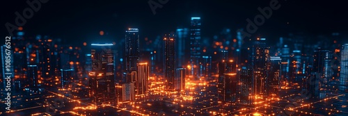 Fototapeta premium Digital business ecosystem visual showing interconnected tech platform glowing data exchanges secure online systems representing business technology