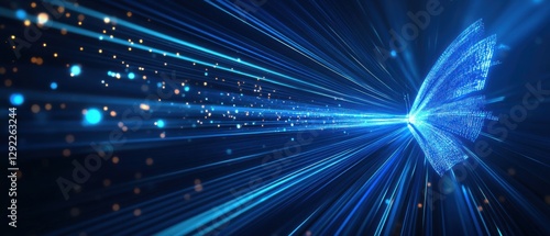 Fototapeta premium Digital butterfly with glowing blue light trails, symbolizing transformation,...