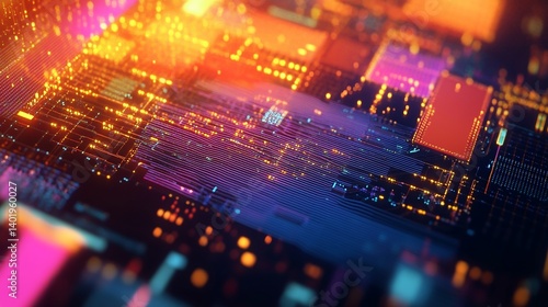 © 为轩 张, Obraz premium Digital Chip with Data Visualizations, Advanced Microchip Technology Concept
