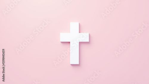 © Tameem, Obraz premium Digital Christian cross on a light pink background with a subtle dark shadow effect.