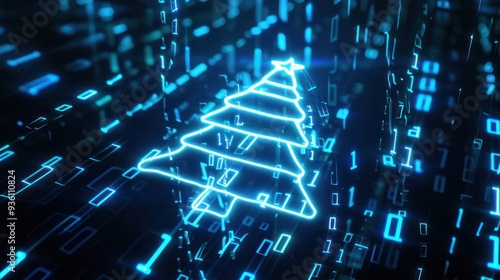 © Barokahe, Obraz premium Digital Christmas Tree in a Binary World