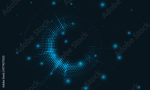 © Dyan, Naklejka premium Digital circles of blue glowing dots. Information particles in a neural network. Big data visualization into cyberspace. Vector illustration.
