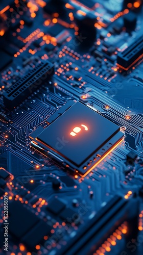 © Shyamal, Fototapeta premium Digital Circuit Board Background with Glimmering Blue Lights Effect