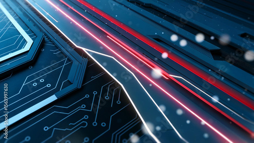 Fototapeta premium Digital circuit board with glowing lines abstract technology
