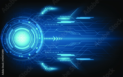 © VIEWVEAR, Obraz premium Digital circuit technology future, Futuristic system data connection interface computer on dark blue background