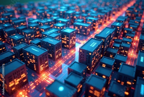 © Adisorn, Obraz premium Digital City Data Flow - 3D Render
