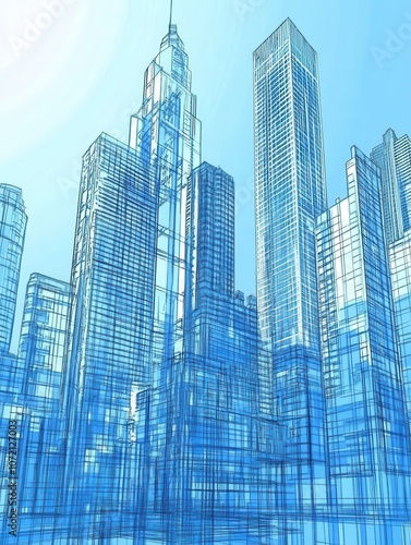 © Younes, Fototapeta premium Digital Cityscape Blueprint