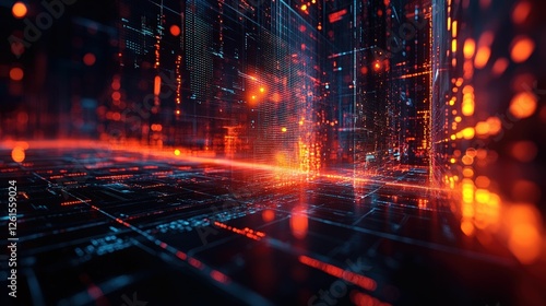 © Ali, Obraz premium Digital cityscape glowing red blue vibrant technology