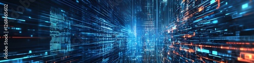 © MASJAB, Obraz premium Digital Cityscape Streaming Data Through City Towers