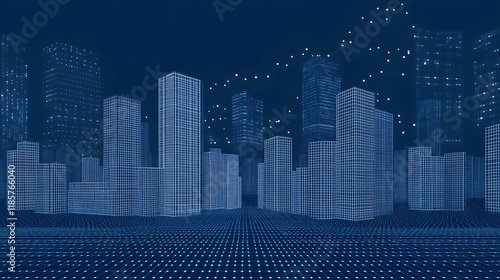 Obraz premium Digital Cityscape Wireframe Buildings Network