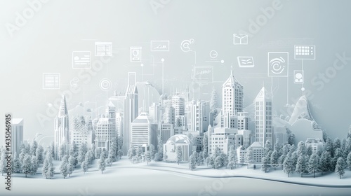 © Teruss, Fototapeta premium Digital Cityscape with Technology Icons