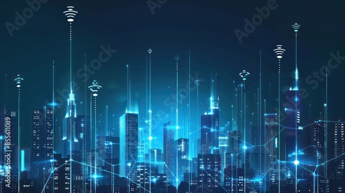 © @_ greta, Fototapeta premium Digital Cityscape with Wireless Network