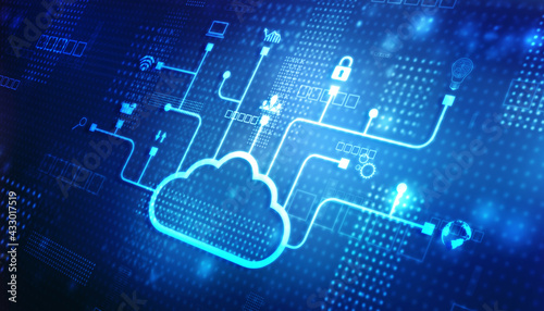 Obraz premium Digital Cloud Computing, Cyber Security, Future Technology Digital Data...