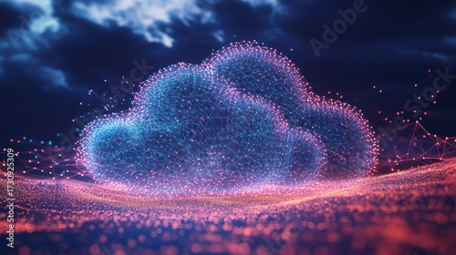 Fototapeta premium Digital cloud computing network, stormy sky background, data storage,...