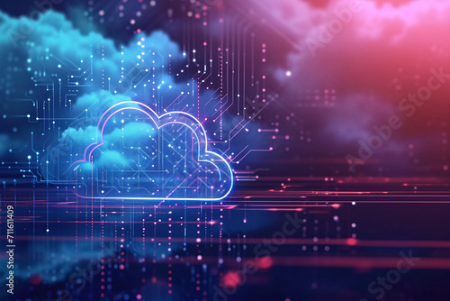 Obraz premium Digital cloud graphic with neon lights on a dark background