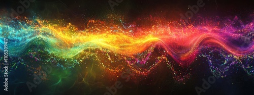 Obraz premium Digital Code Flowing Across the Scene in Rainbow Hues, Abstract Technology...