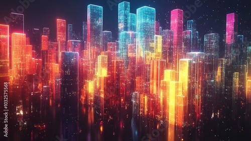 Fototapeta premium Digital colorful shiny blocks city abstract art design graphic