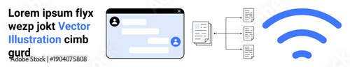 Fototapeta premium Digital communication, networking, data sharing, remote access, connectivity, technology. Chat interface, document network and wireless signal. Digital communication and networking concepts