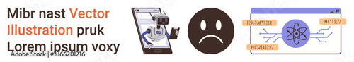 © robu_s, Fototapeta premium Digital communication, technology challenges, data security, online expression, system analysis, technology trends. Smartphone, sad face data visualization. Digital communication and technology