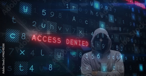 © vectorfusionart, Fototapeta premium Digital composite image of hacker with access denied text