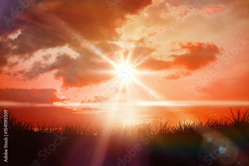 Obraz premium Digital composite of Sunrise over grass