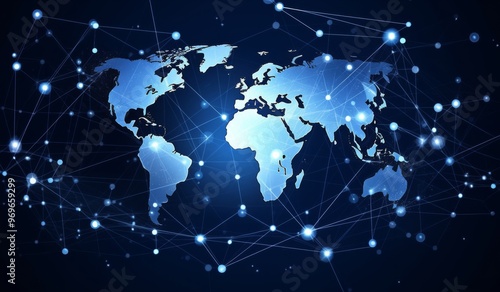 © kkkiim graphic, Fototapeta premium Digital Connections Surrounding the World on Blue Background, Representing Global Network and Connectivity