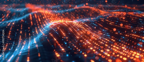 Fototapeta premium Digital Connectivity: Glowing Data Flow with Binary Code Light Effects