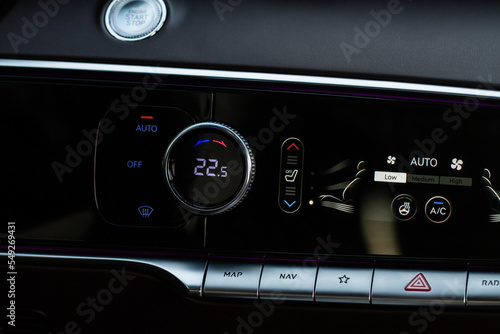 © Roman, Fototapeta premium Digital control panel car air conditioner dashboard. Modern car interior conditioning buttons inside a car close up view.