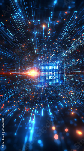 © Aziizun, Obraz premium Digital Core: A Futuristic, Blue and Orange Data Stream Visualization