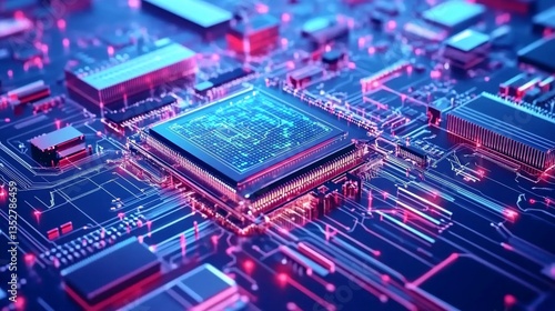 © Izza, Fototapeta premium Digital Core: A High-Resolution Close-Up of a Modern Microchip