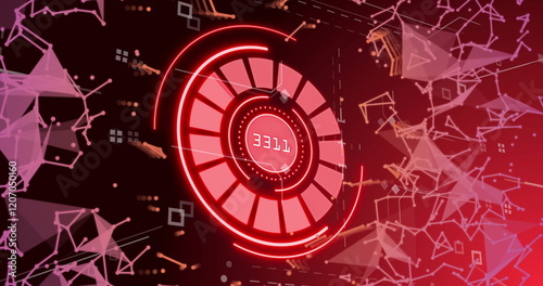Fototapeta premium Digital counter displaying 1587 with geometric shapes and network connections image