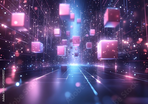 Obraz premium Digital Cubes Futuristic Corridor.