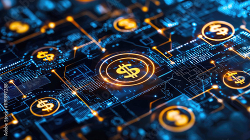 Fototapeta premium Digital currency symbols on futuristic circuit board
