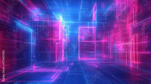 Fototapeta premium Digital cyberspace network structure creating virtual reality environment