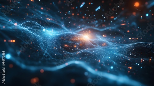 © Berkah, Obraz premium Digital cyberspace with particles and Digital data network connections concept.