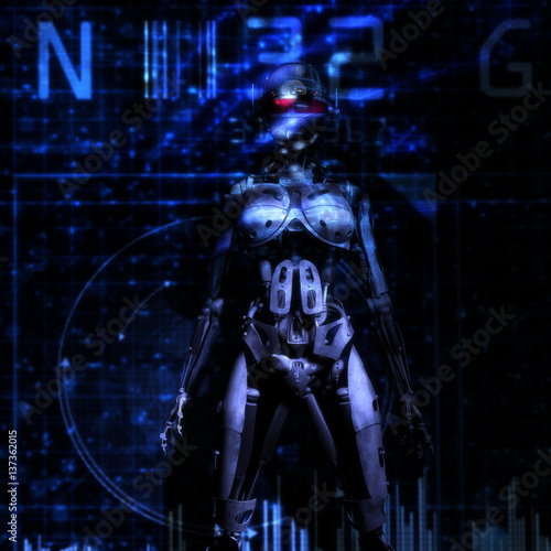 © crimson, Naklejka premium Digital 3D Illustration of a Fembot