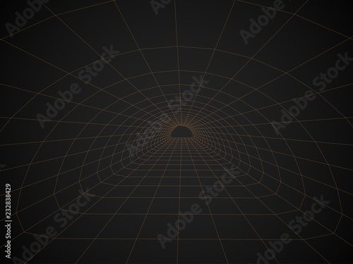 © Mikser45, Obraz premium Digital 3d wireframe tunnel. Vector abstract background.