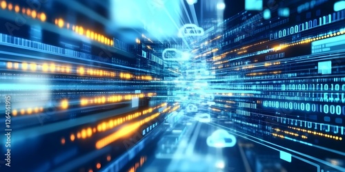 © CreativeSeven , Fototapeta premium Digital data exchange technology advancements in software development urban environment high-tech visualization