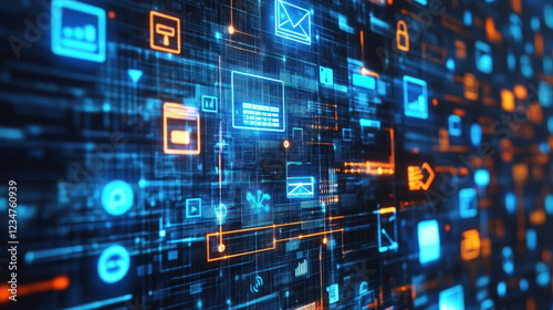 Obraz premium Digital Data Flow in Futuristic Cyber Network