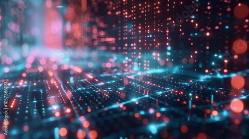 © Juan, Obraz premium Digital data flow with red and blue lights