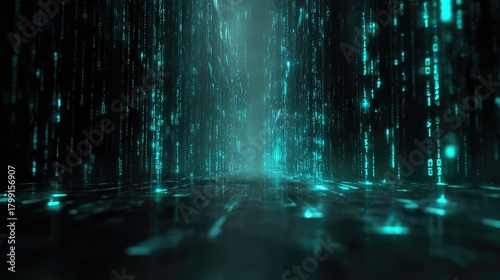 Fototapeta premium Digital data flowing through a virtual matrix tunnel