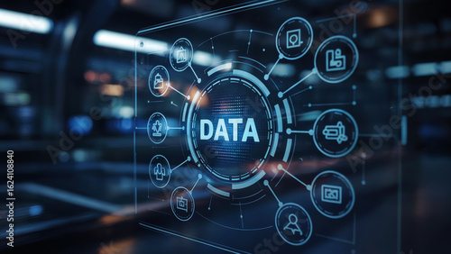 © tecnologia, Obraz premium Digital data interface with icons and word DATA