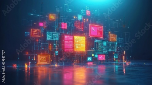 Naklejka premium Digital Data Network: A Futuristic Visualization of Interconnected Information