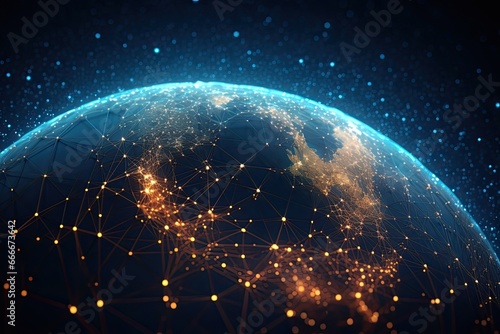 Obraz premium Digital data network connection on Earth. Global communication and technology concept. Generative AI