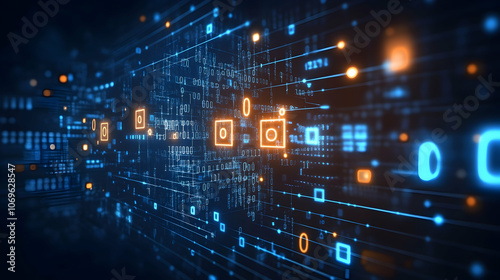 Naklejka premium Digital Data Network, Internet, Technology, Communication, Code, Binary