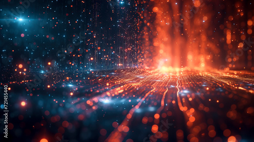 Fototapeta premium Digital Data Stream in Cyber Network Space created with Generative AI technology
