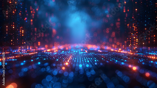 Fototapeta premium Digital data stream in deep blue, high speed data transfer with motion...