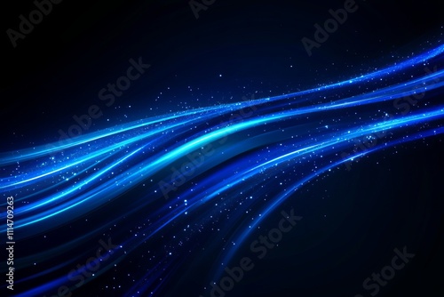 Fototapeta premium Digital data stream in deep blue, high speed data transfer with motion effect, cyber tech space, expansive room for custom text,dark sky