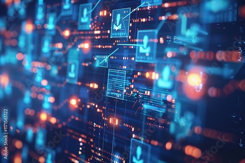 © Rayhanbp, Obraz premium Digital data stream, network connections, information flow visualization.
