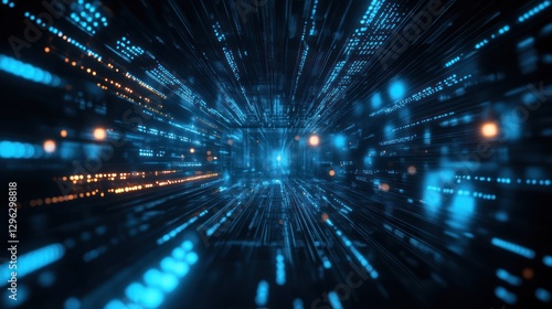 © lestari, Obraz premium Digital data stream tunnel, abstract background